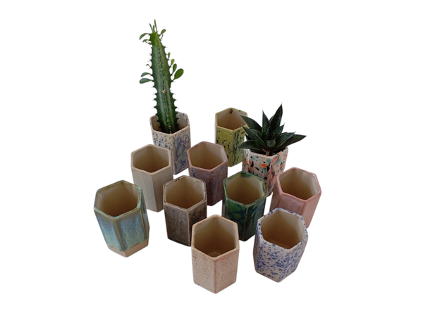 Breng een sprankje kleur in jouw huis met deze schattige, 6-hoekige potjes! Perfect voor kleine plantjes en stekjes, deze potjes zijn niet alleen functioneel, maar ook echte eyecatchers.